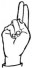 На ћирилици написано БОГДАН АКСЕНТИЋ састоји се из 14 слова [?]. Исписано ћириличном једноручном азбуком за глувонеме: